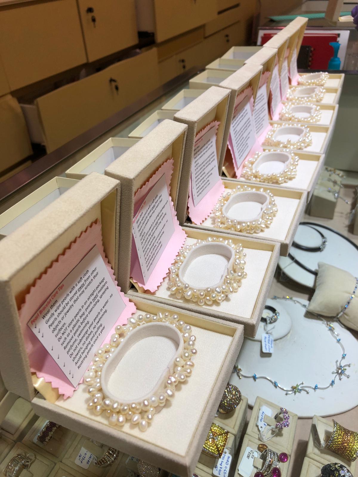 BA.SG, the eco-friendly, younger, simpler brand, powered by eClarity, symbolizing the diamond retailer of the next generation. The team gift-wraps these pearl bracelets to deliver every Friday!