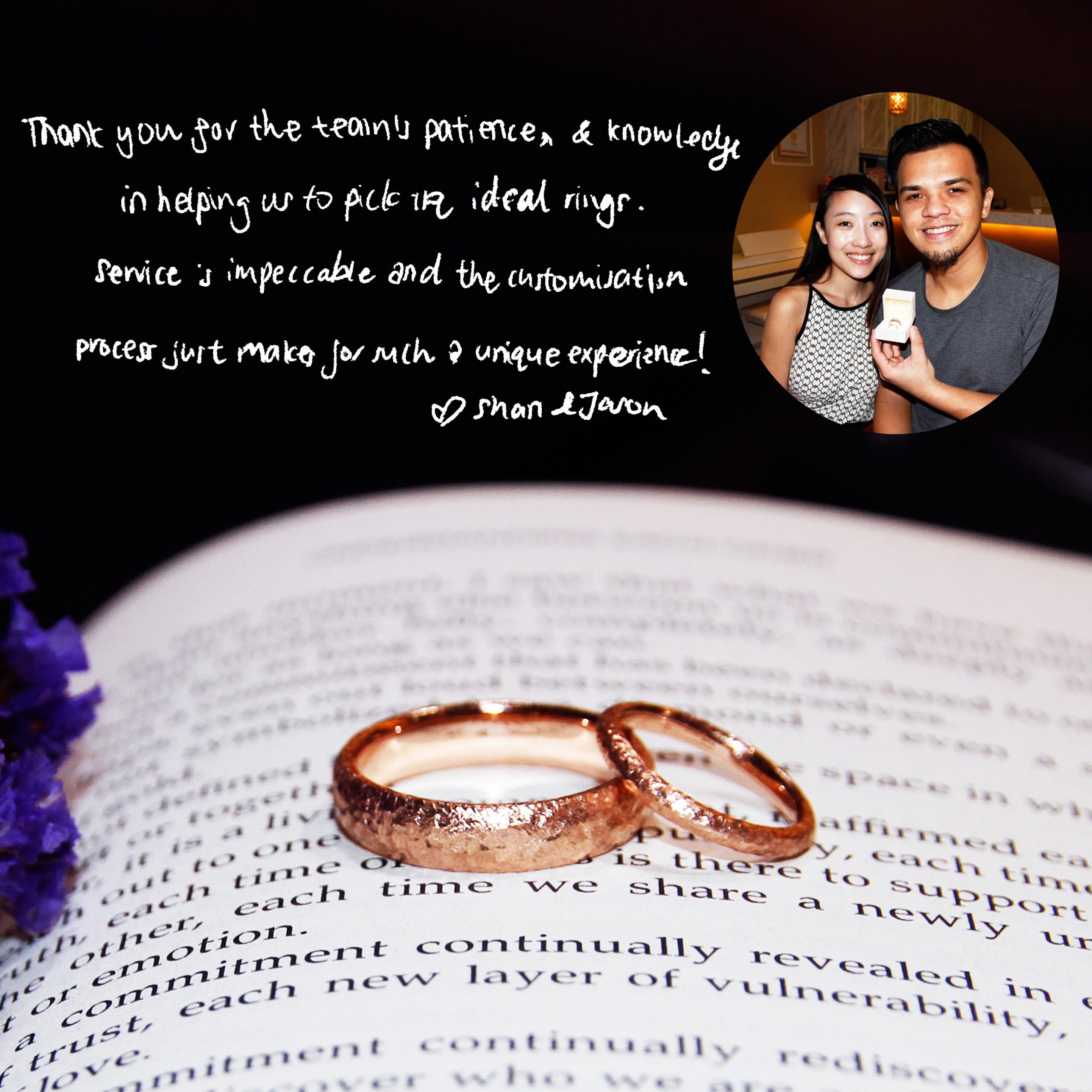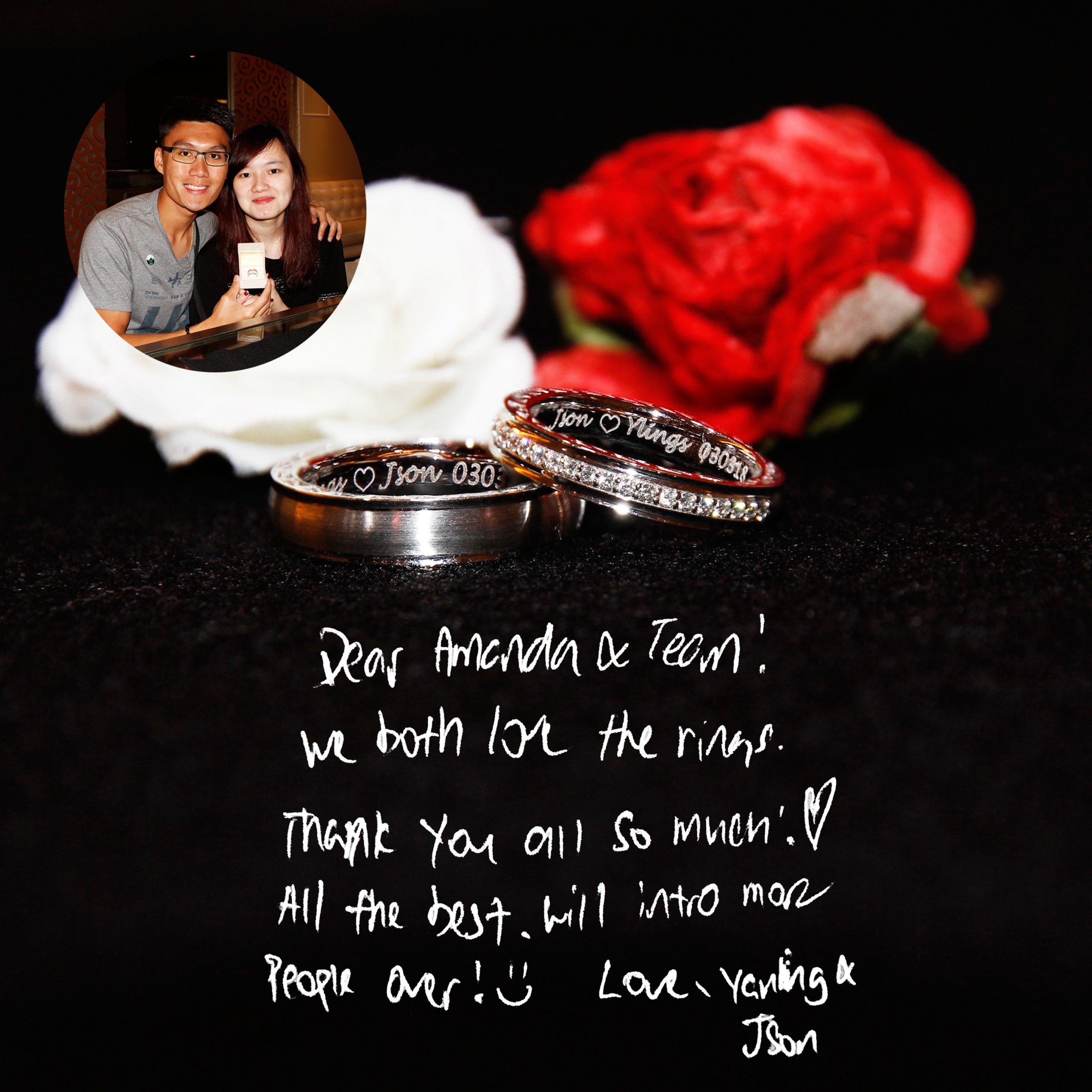 “Dear Amanda & team! We both love the rings. Thank you all so much! ♡ All the best. Will intro more people over! ? Love, Yanling & Jason