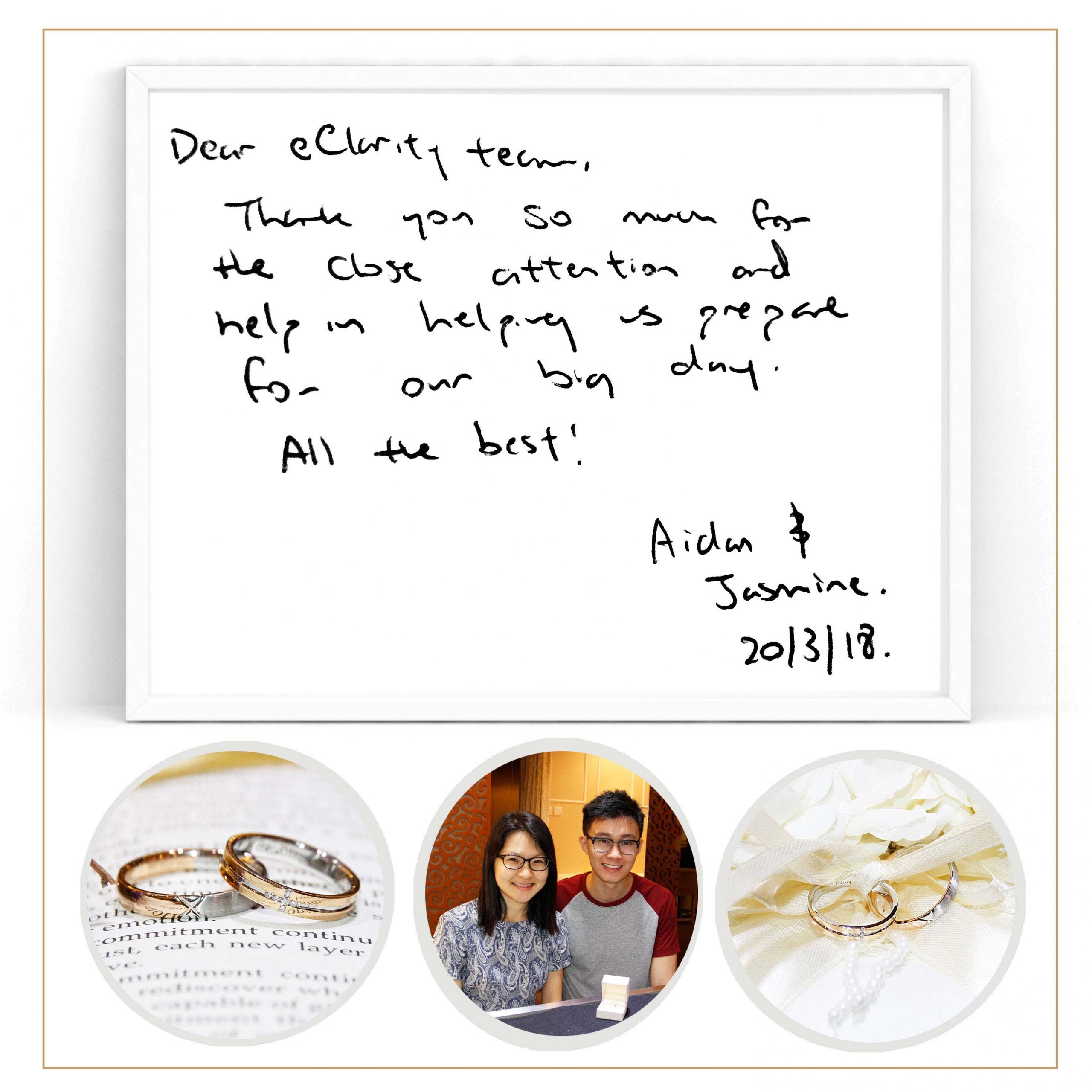 “Dear eClarity, thank you for the wonderful ring & last min request.” – Leon & Yin ?