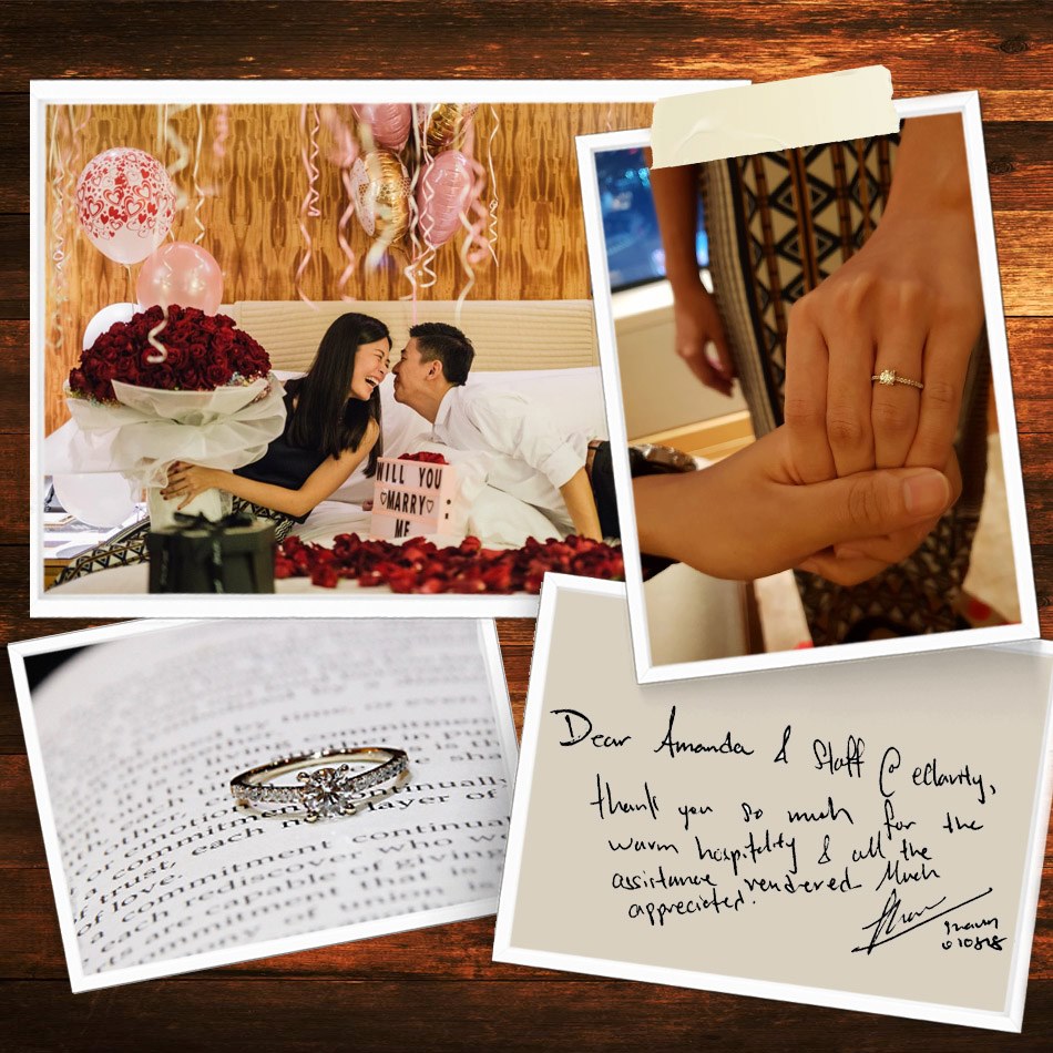 Sometimes you just need a helping hand from those little cuties to get a ‘yes’ from your partner. Tie the proposal ring (visit eClarity.com.sg or BA.sg to select an engagement ring) on the collar of your beloved pup or kitten and let it run to your partner, now you may pop the question when he/she is overwhelmed with irresistible cuteness.