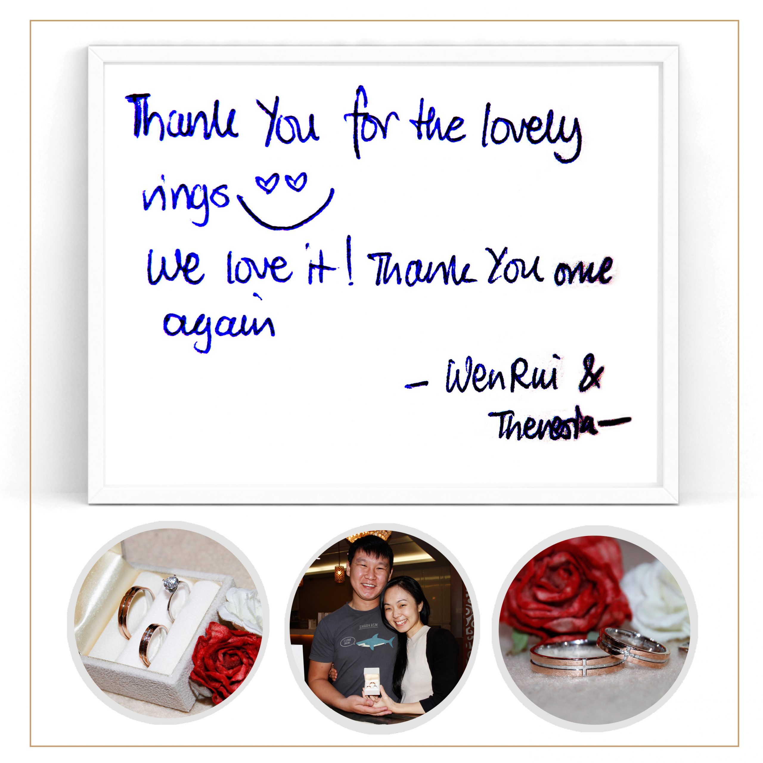 “Thank you for the lovely rings. ? We love it! Thank you once again.” – Wen Rui & Theresia