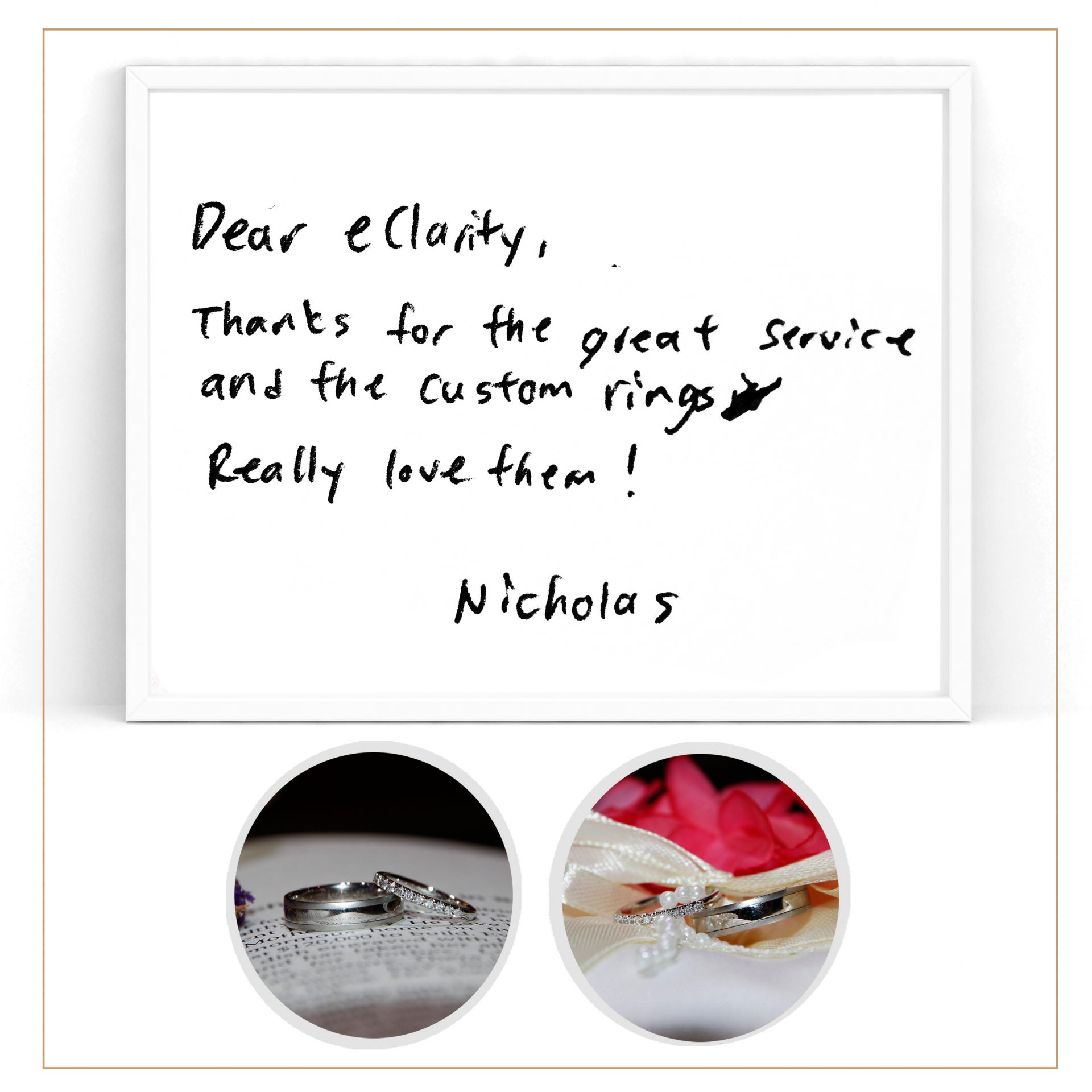 “Dear eClarity, thanks for the great service and the custom rings. Really love them!”- Nicholas