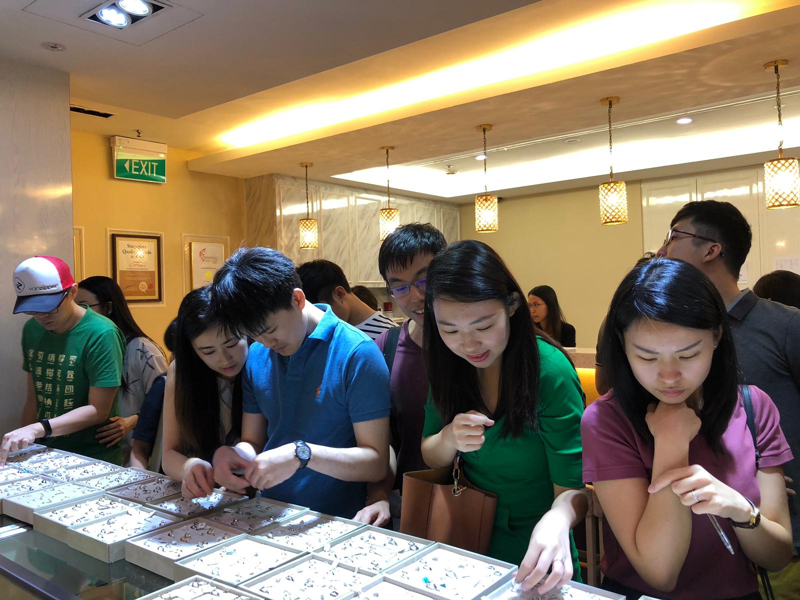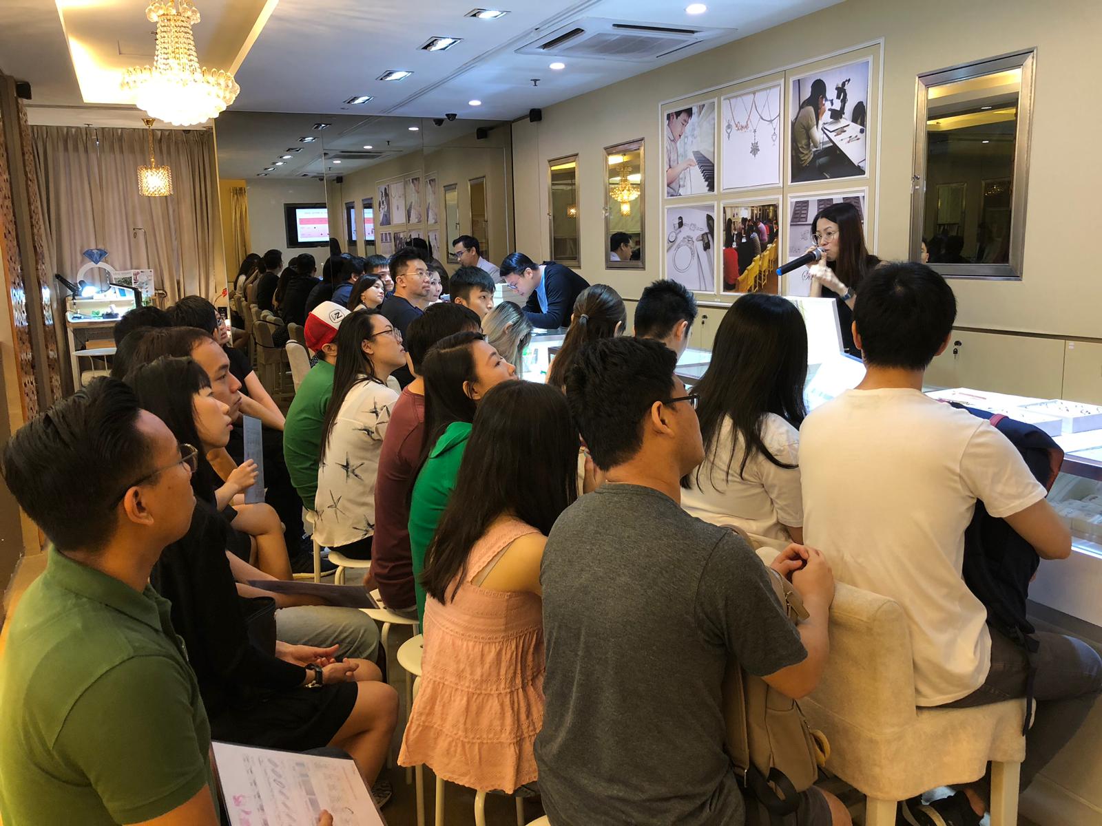 We hosted an unforgettable afternoon to celebrate Great Singapore Sale last Saturday at Ngee Ann City. Couples joined the celebration engraving on their own rings or pens, challenging themselves in differentiating and identifying trays of designs. GIA Gemologist Amanda was on-site to show sharing tips on customization.