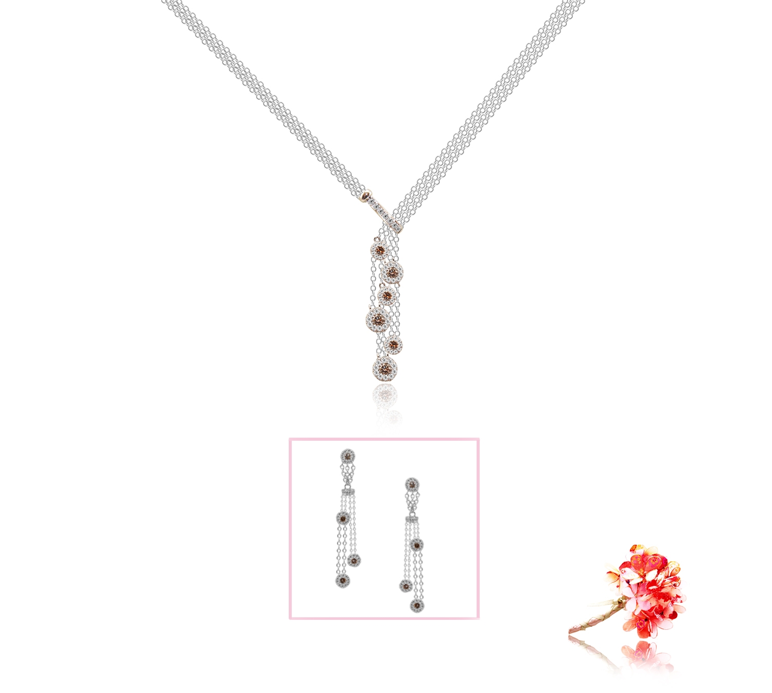Every bride’s dream necklace. #Truelovecollection necklace and earrings glows in blissfulness from every perspective – embracing elegant flow, classy gentleness and demure colors. Dangling and multi-layered chains are composed of exquisitely-set rose cut and round diamonds, while resplendent fancy brown diamonds artistically embellish sophistication and gracefulness. #eClarity #bridaljewellery #shoplocalbrands