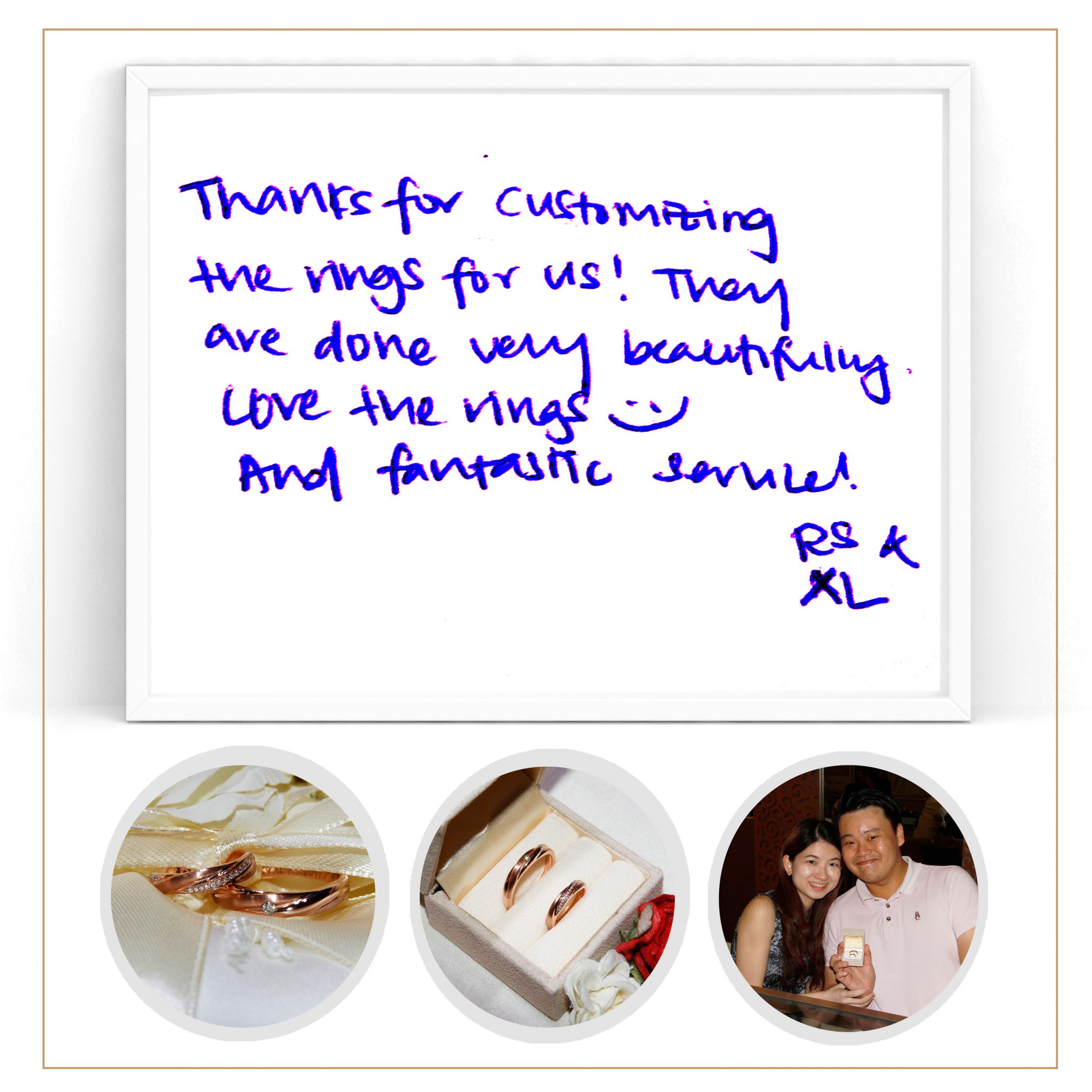 “Thanks for customizing the rings for us! They are done very beautifully. Love the rings?And fantastic service!” – RS & XL