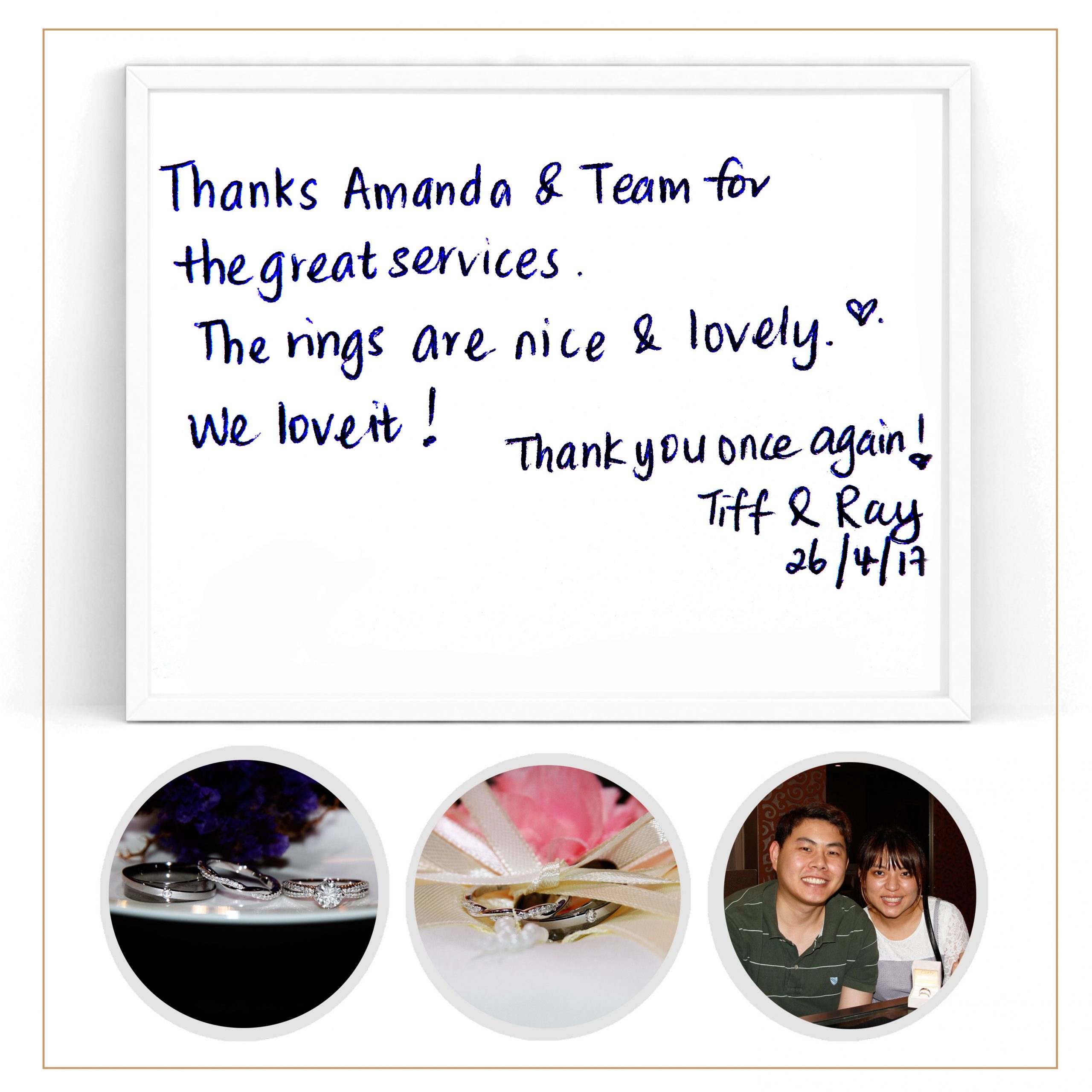 “Thanks Amanda & team for the great services. The rings are nice & lovely. We love it! Thank you once again!” – Tiff & Ray