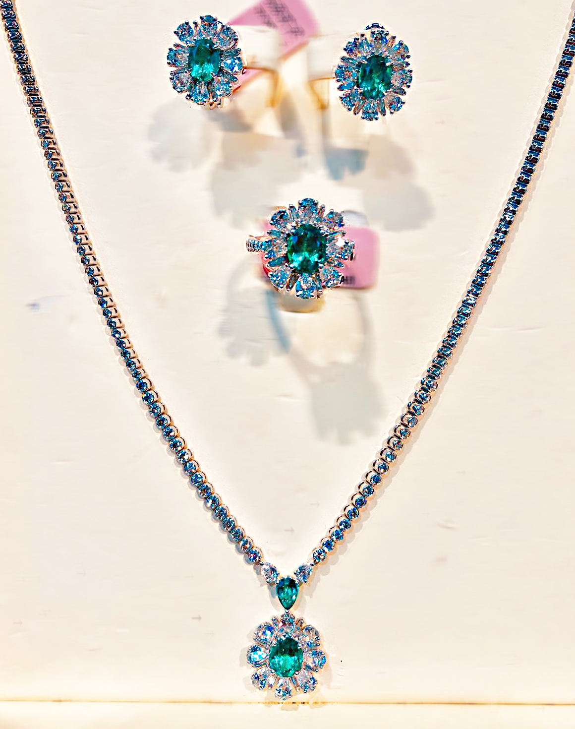 Here, the most premium quality green oval emeralds are encircled by pear-shaped diamonds to reveal a floral pattern in 18k gold.