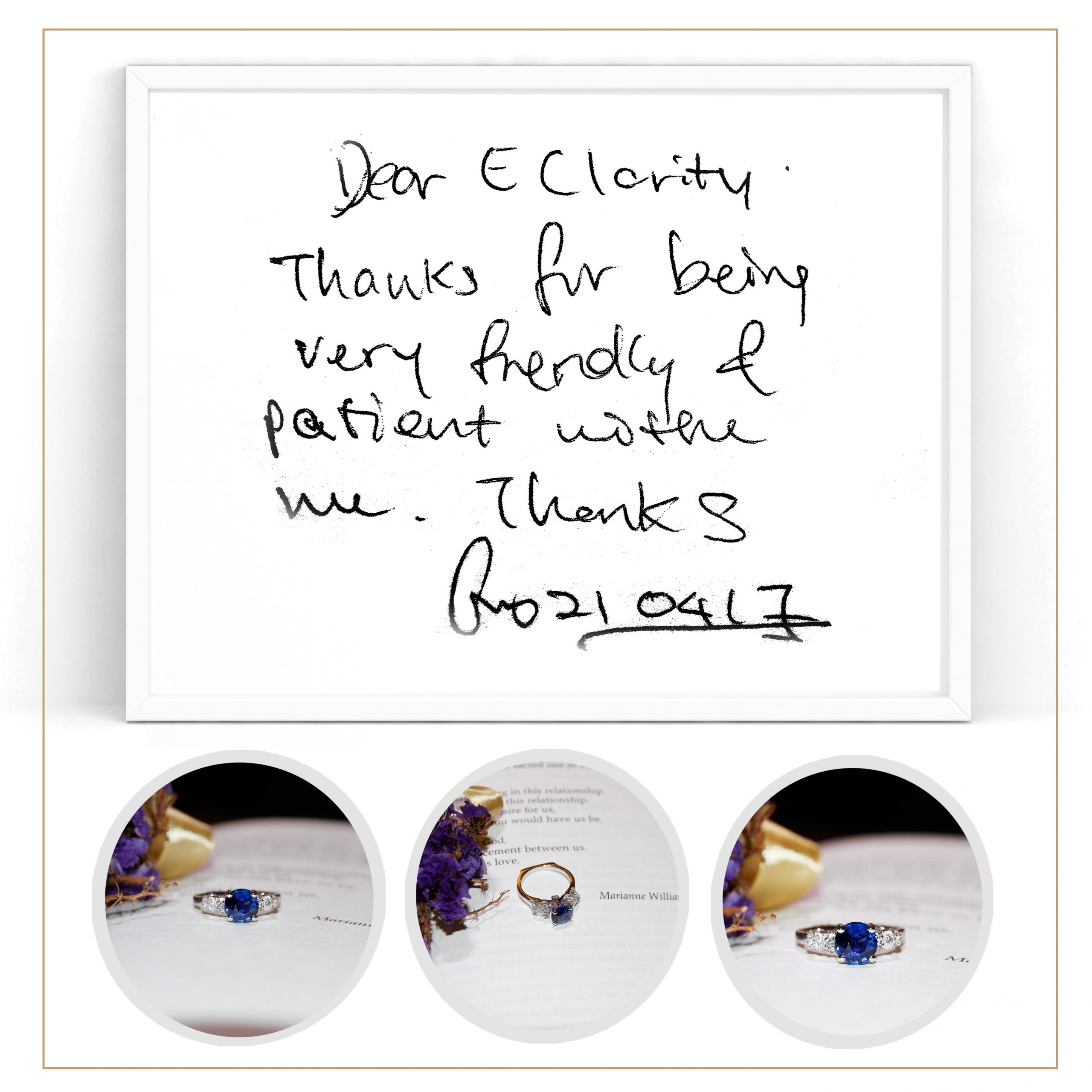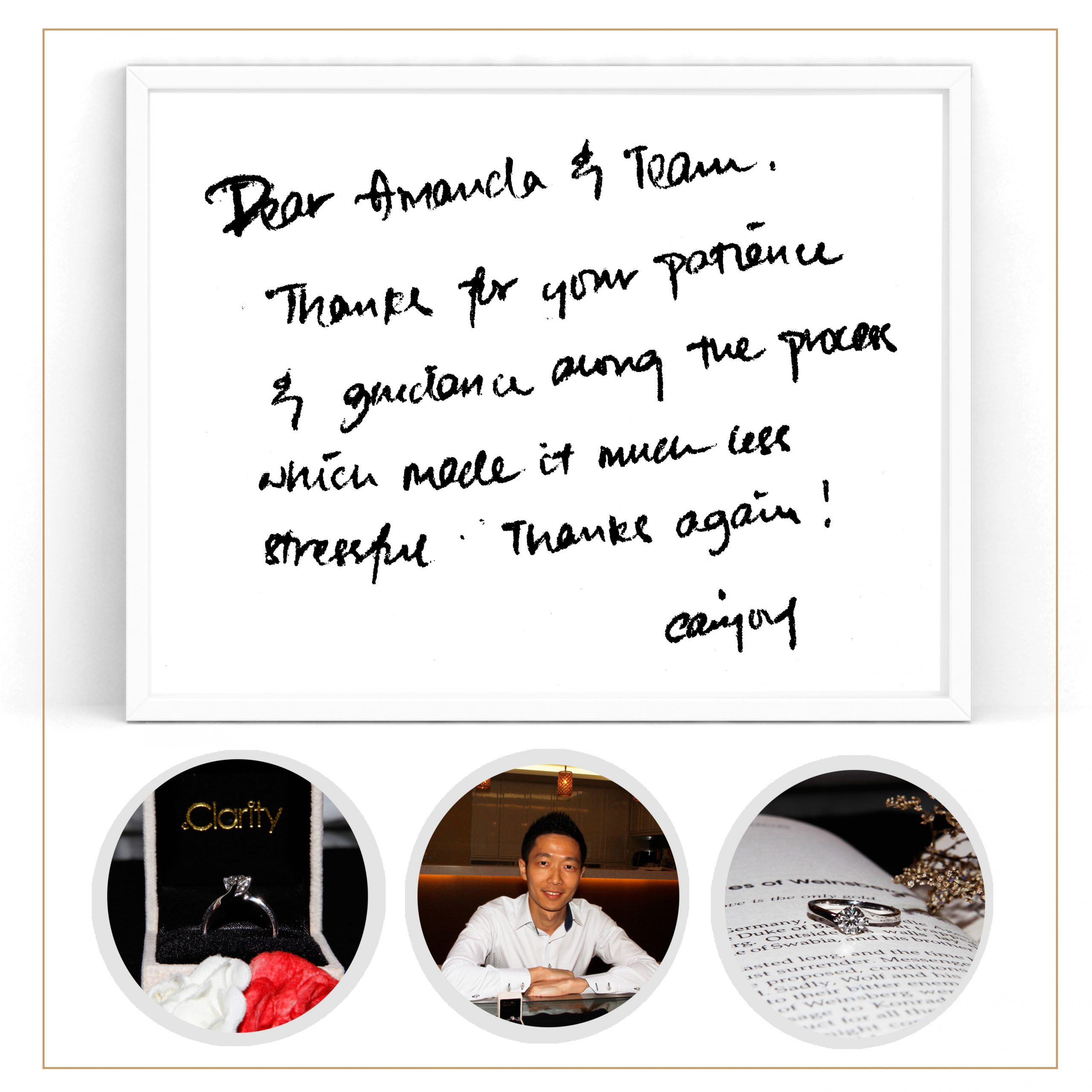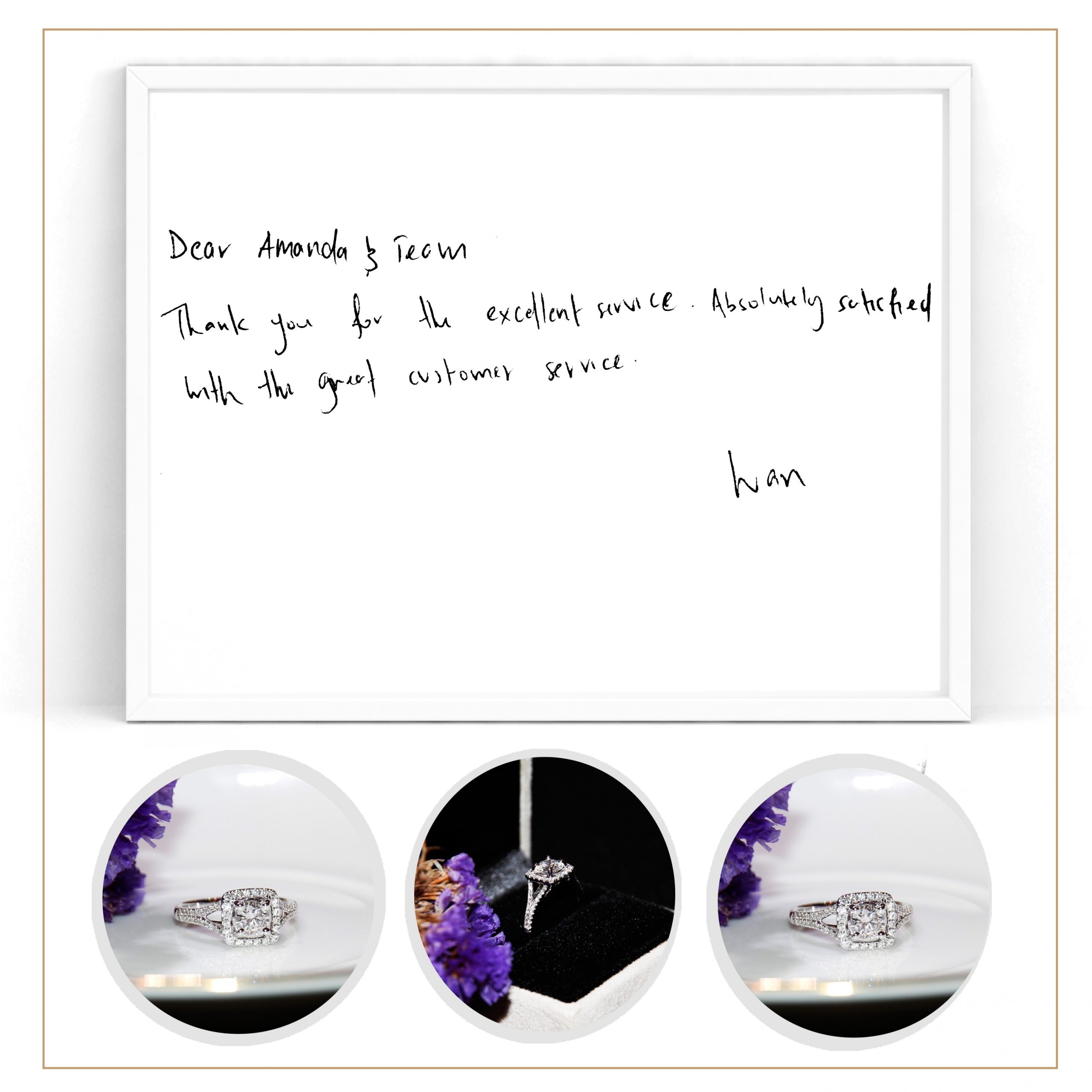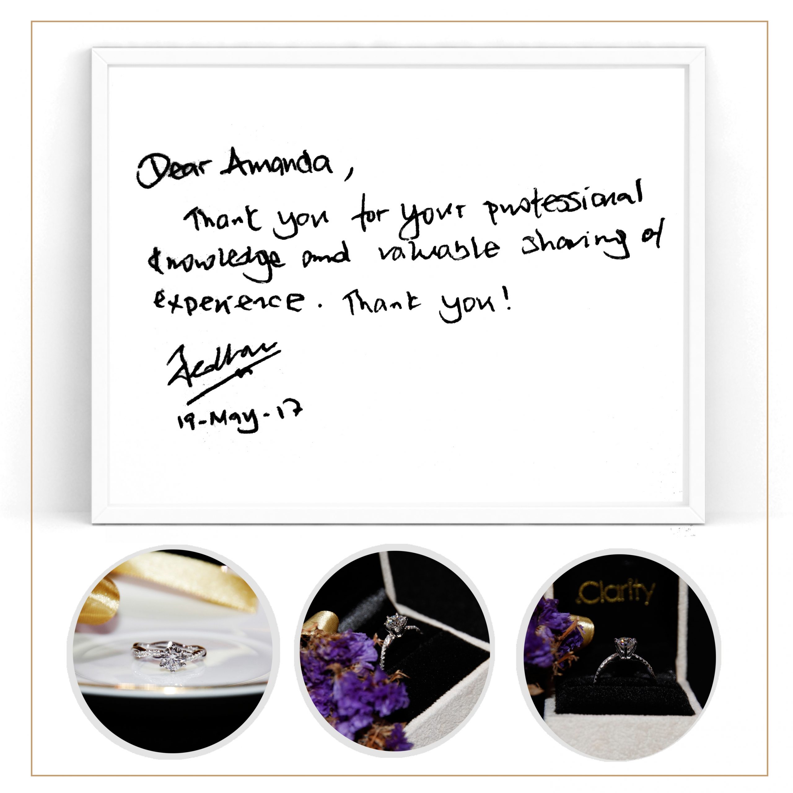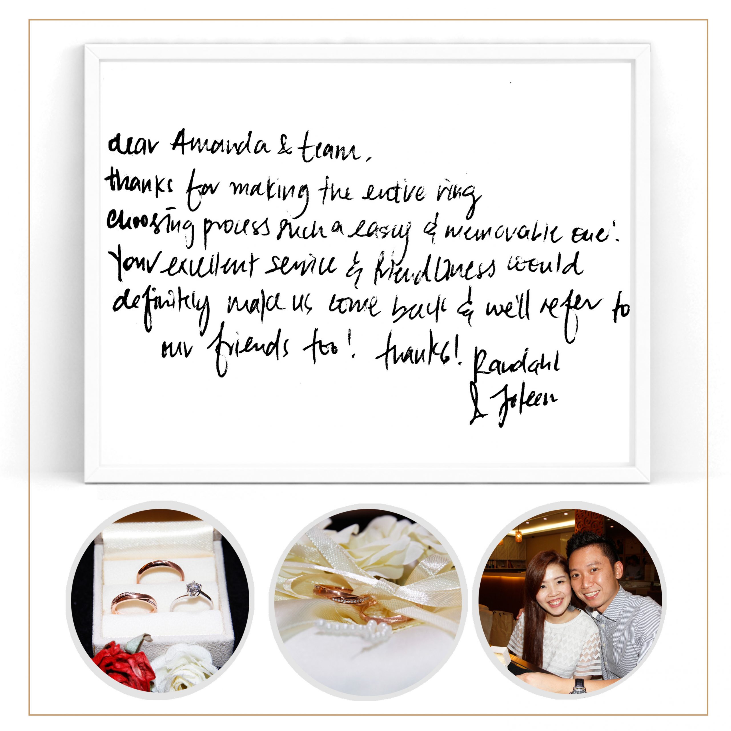 “Dear Amanda & team, thanks for making the entire ring choosing process such an easy & memorable event! Your excellent service & friendliness would definitely make us come back & we’ll refer to our friends too!” – Randahl & Joleen