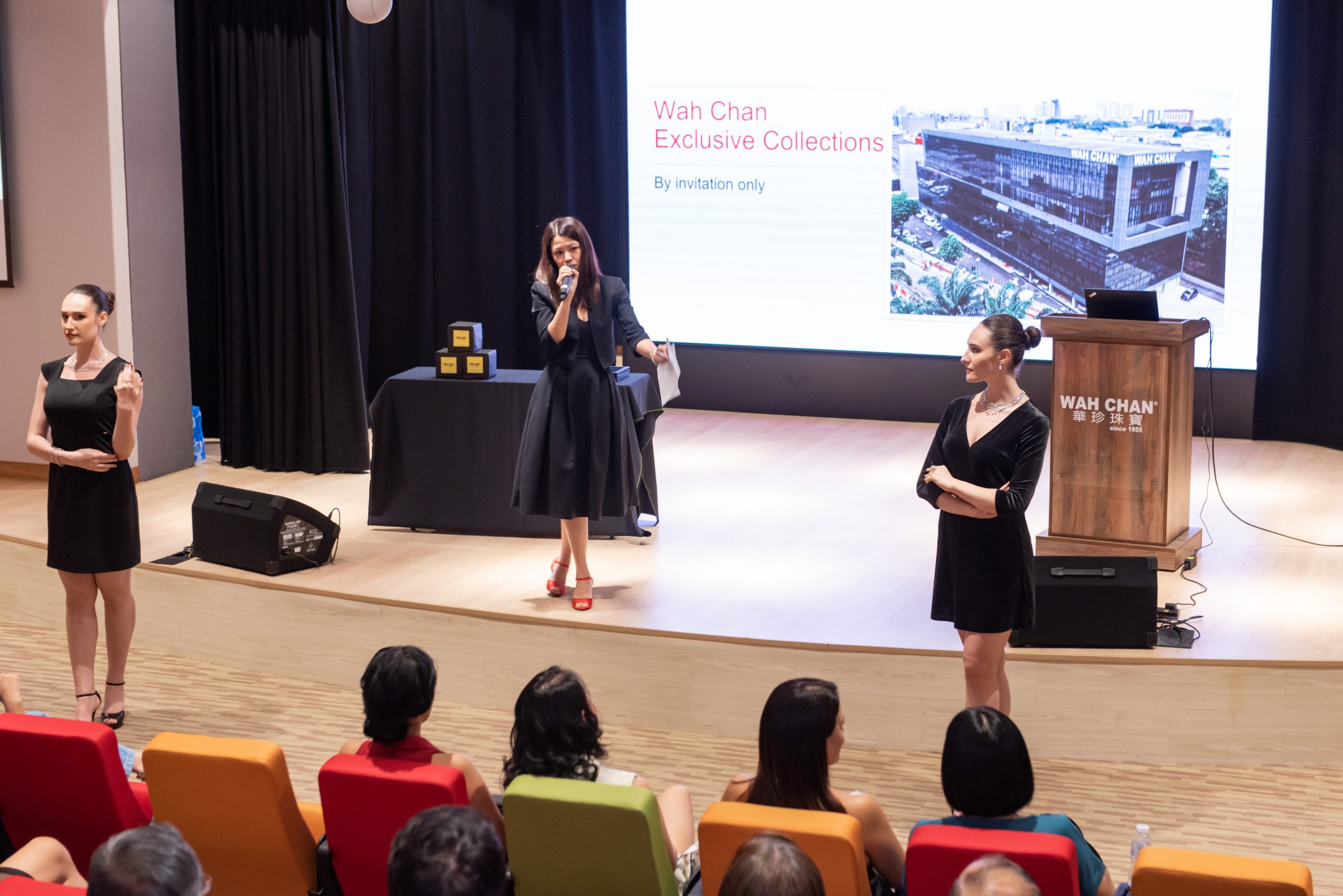 eClarity Director and Gemologist Amanda gave a diamond talk “Beyond 4Cs” in KL Malaysia, where premium and stunning Wah Chan jewellery was launched at the exclusive, by-invitation-only event at Wah Chan building. The talk highlighted the top 5 famous diamonds in the world, showcased necklaces worth 1.5 million ringgit, and a 23 carat diamond ring.