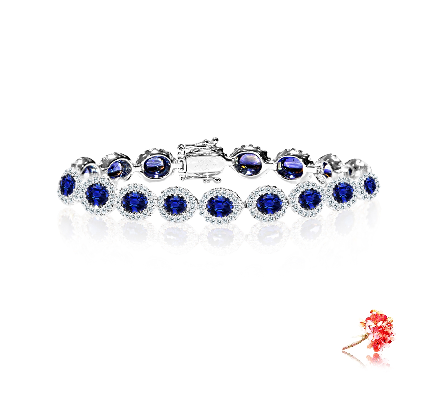 Diamond and blue sapphire bracelet scintillating with 19 blue sapphires 8.47 carat and 266 round brilliant diamonds 2.22 carat in 18k white gold. WhatsApp/text +65 98331220.