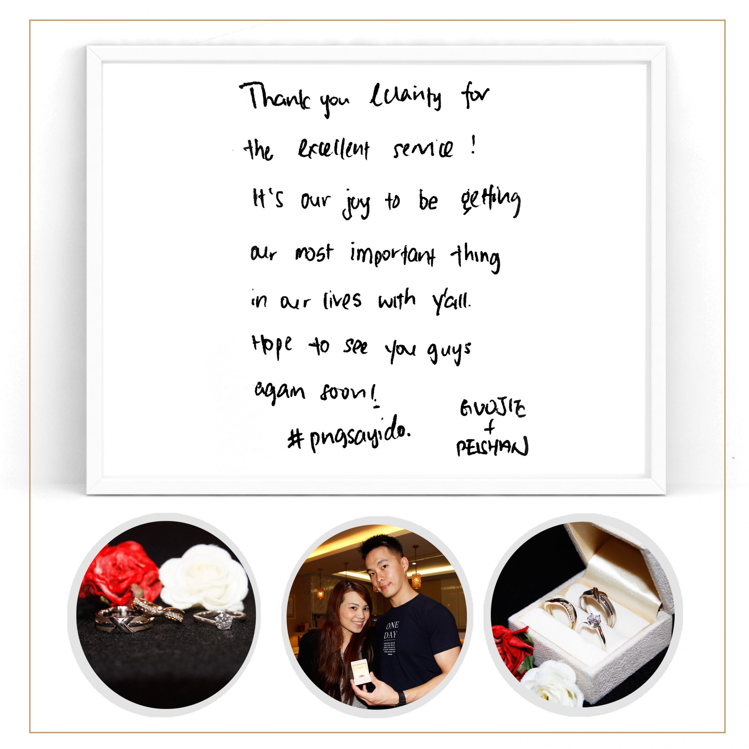 “Thank you eClarity for the excellent service! It’s our joy to be getting our most important thing in our lives with y’all. Hope to see you guys again soon! #pngsayido” – Guo Jie & Pei Shan