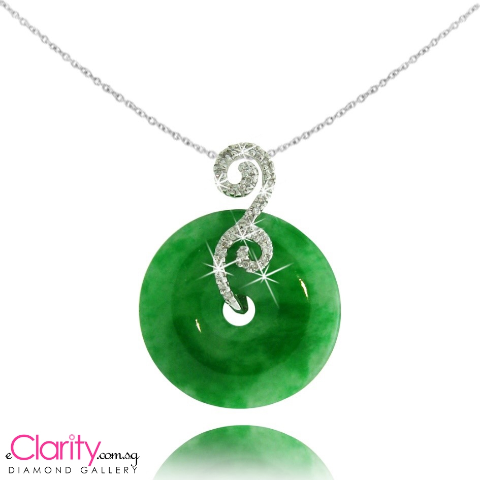 Jade jewellery is collected by Chinese. The jade above is held by 33 round brilliant diamonds 0.102carat in 18k gold, white. For a mum who values the tradition, jade will be something she loves.