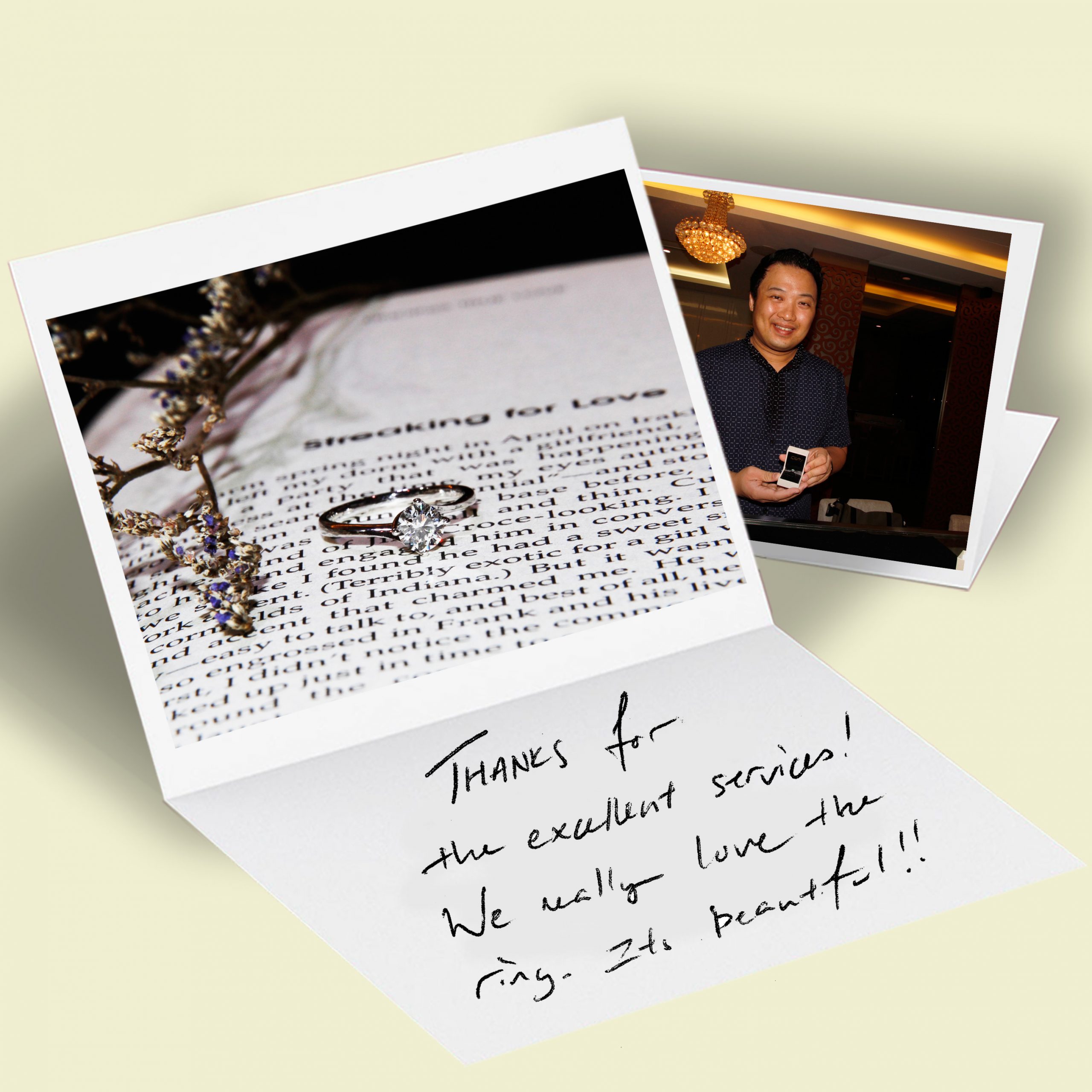 “Thanks for the excellent services! We really love the ring. It’s beautiful!!” – Shou Ming