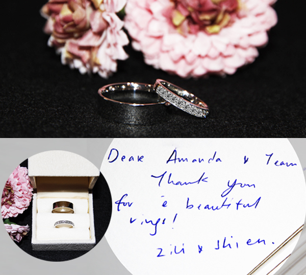 “Dear Amanda & team, thank you for the beautiful rings!”- Zi Li & J hien