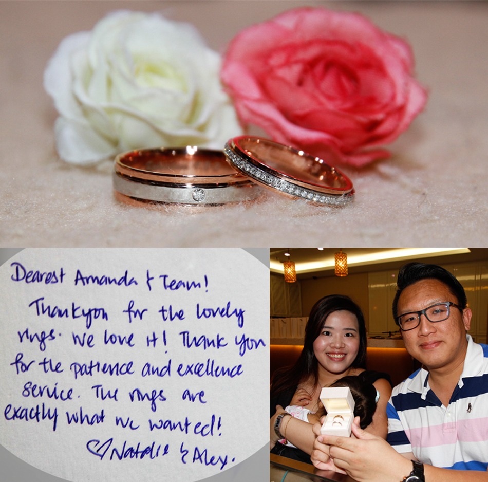 “Dearest Amanda & team! Thank you for the lovely rings. We love it! Thank you for the patience and excellent service. The rings are exactly what we wanted!” – Natalie & Alex