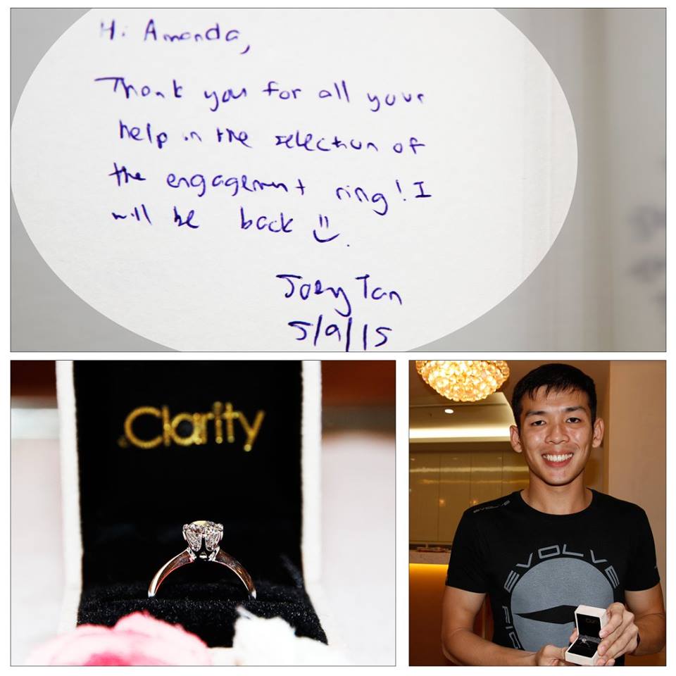 “Hi #eClarityAmanda, thank you for all your help in the selection of the engagement ring! I will be back.:)” – Joey Tan