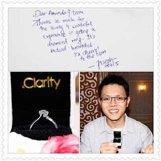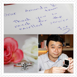 “Dear Amanda, thanks for the patience to let me understand about diamond and make the sale so wonderful. Thank you so much!” – Ee Qing