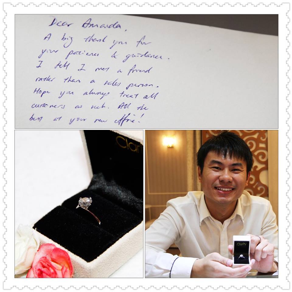 “Dear Amanda, thanks for the patience to let me understand about diamond and make the sale so wonderful. Thank you so much!” – Ee Qing