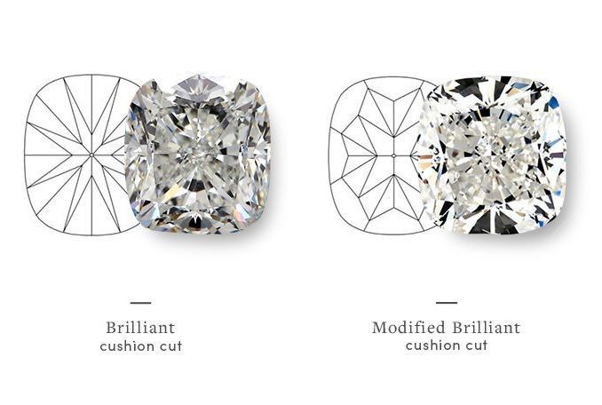 On the other hand, a cushion modified brilliant has an extra row of facets just below the girdle, simulating a flower shape, while the facets on the pavilion do not exactly reach the girdle.