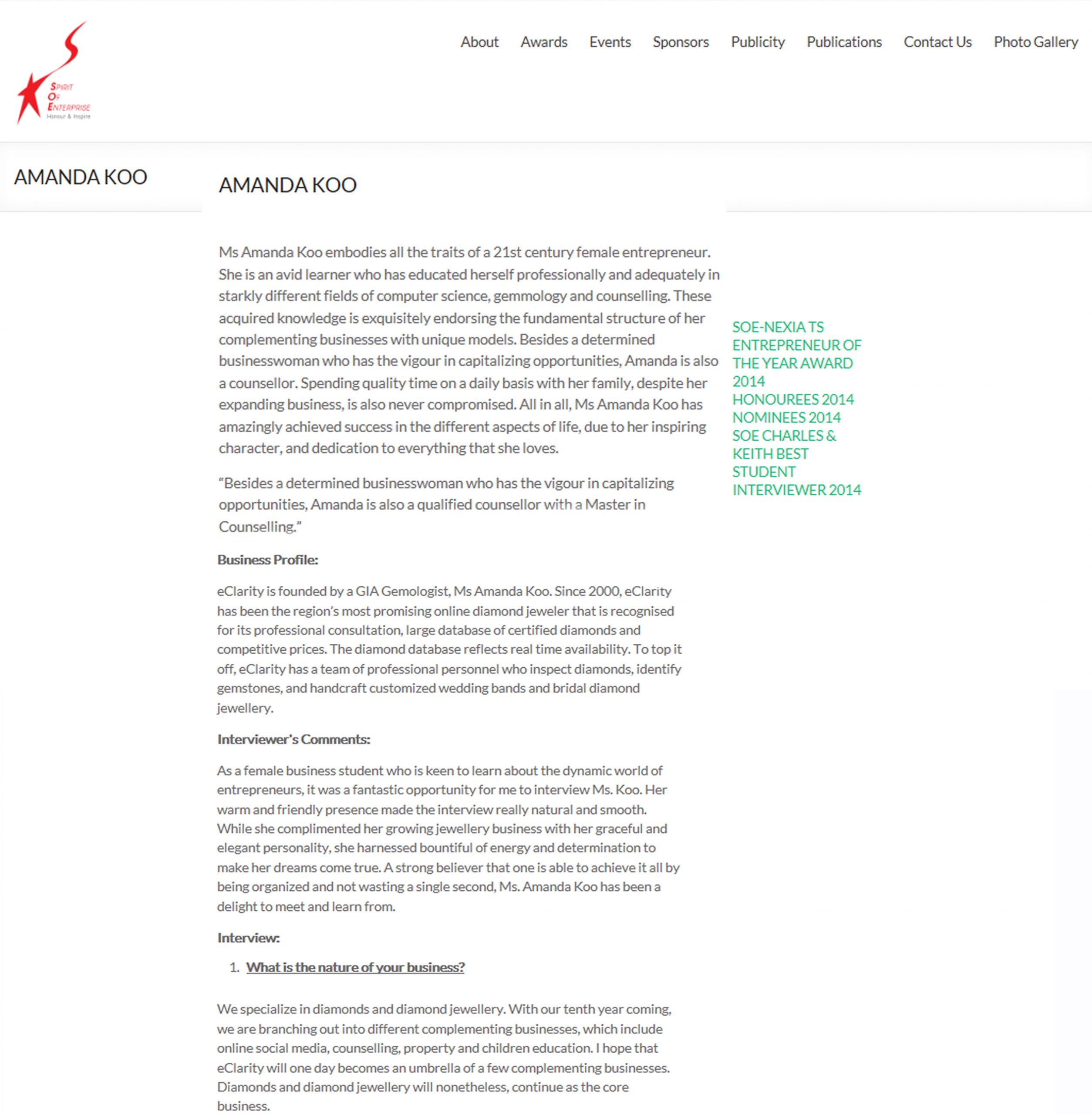 Ms Amanda Koo embodies all the traits of a 21st century female entrepreneur. She is an avid learner who has educated herself professionally and adequately in starkly different fields of computer science, gemmology and counselling. These acquired knowledge is exquisitely endorsing the fundamental structure of her complementing businesses with unique models. Besides a determined businesswoman who has the vigour in capitalizing opportunities, Amanda is also a counsellor. Spending quality time on a daily basis with her family, despite her expanding business, is also never compromised. All in all, Ms Amanda Koo has amazingly achieved success in the different aspects of life, due to her inspiring character, and dedication to everything that she loves.