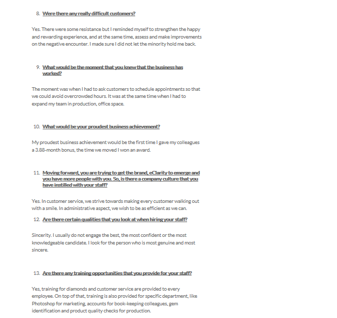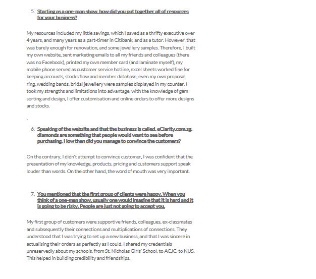 - Speaking of the website and that the business is called eClarity.com.sg diamonds are something that people would want to see before purchasing. Howe then did you manage to convince the customers?