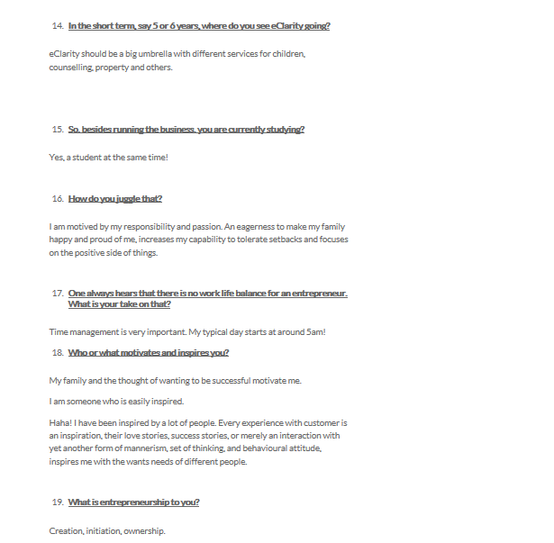 - You mentioned that the First group of clients were happy. When you think of a one-man show, usually one would imagine that it is hard and it is going to be risky. People are just not going to accept you.