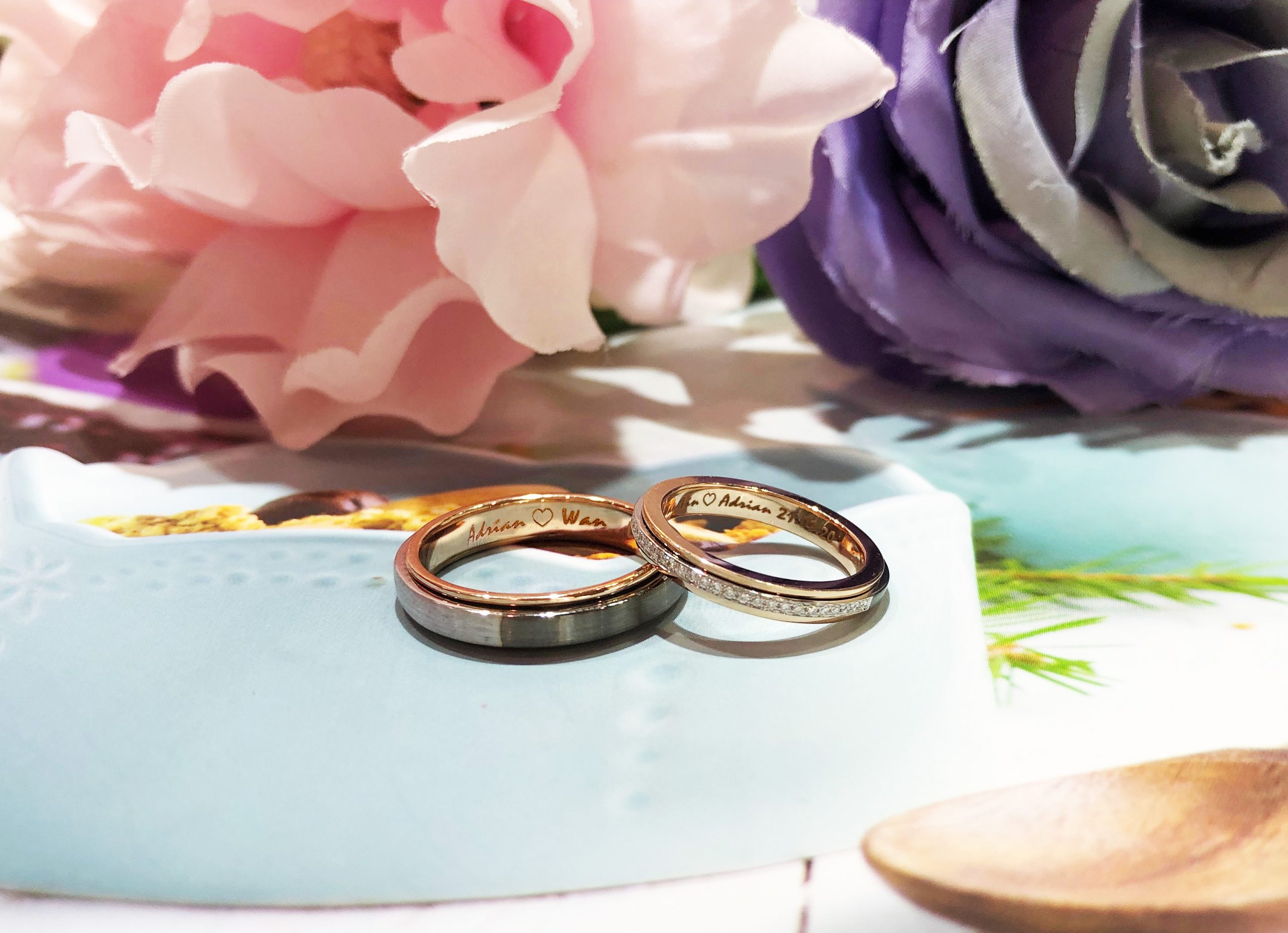 It is not mandatory to stick with one language for engraving. You can engrave your rings with you mother tongue or other foreign language you fancy. Some languages just sound more romantic and beautiful than the others.