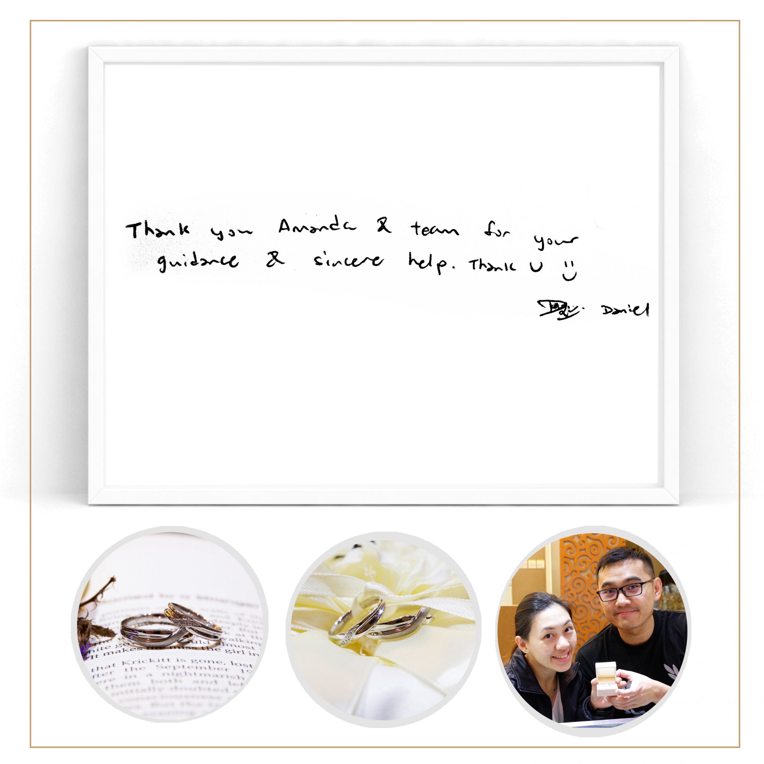 “Dearest Amanda & team, thanks for the excellent service! Really love the rings!” – Hui Min & Wee Kee