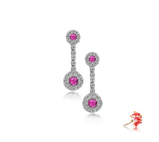 Diamond earrings scintillating with 4 #pinksapphires 0.63 carat and 50 round brilliant diamonds 0.49 carat in 18k gold, white. (E00215)