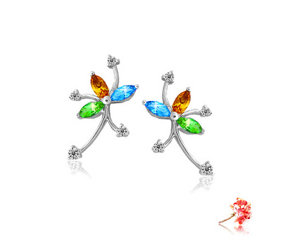 Coloured stone earrings with 6 coloured marquises 0.81 carat, and 8 round brilliant diamonds 0.14 carat in 18k gold, white.