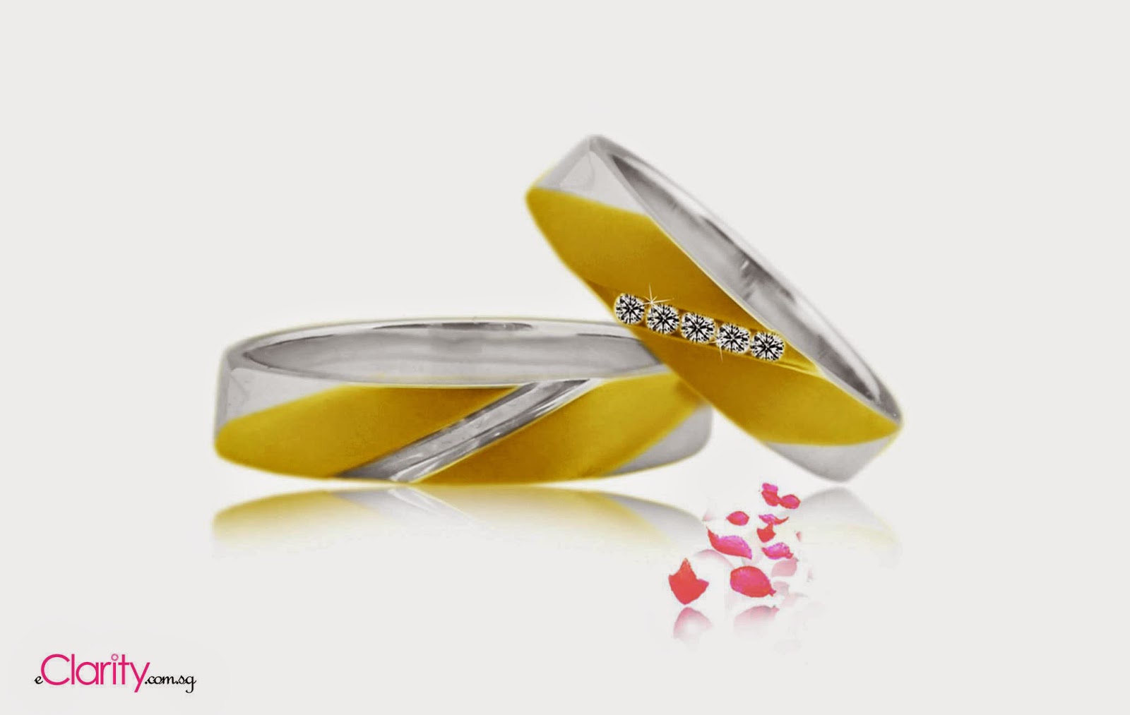 For him, crafted in 18k gold, white and yellow. For her, mounted with 5 round brilliant diamonds 0.064 carat in 18k gold, white and yellow. (WB0203A-WY and WB0203B-WY)
