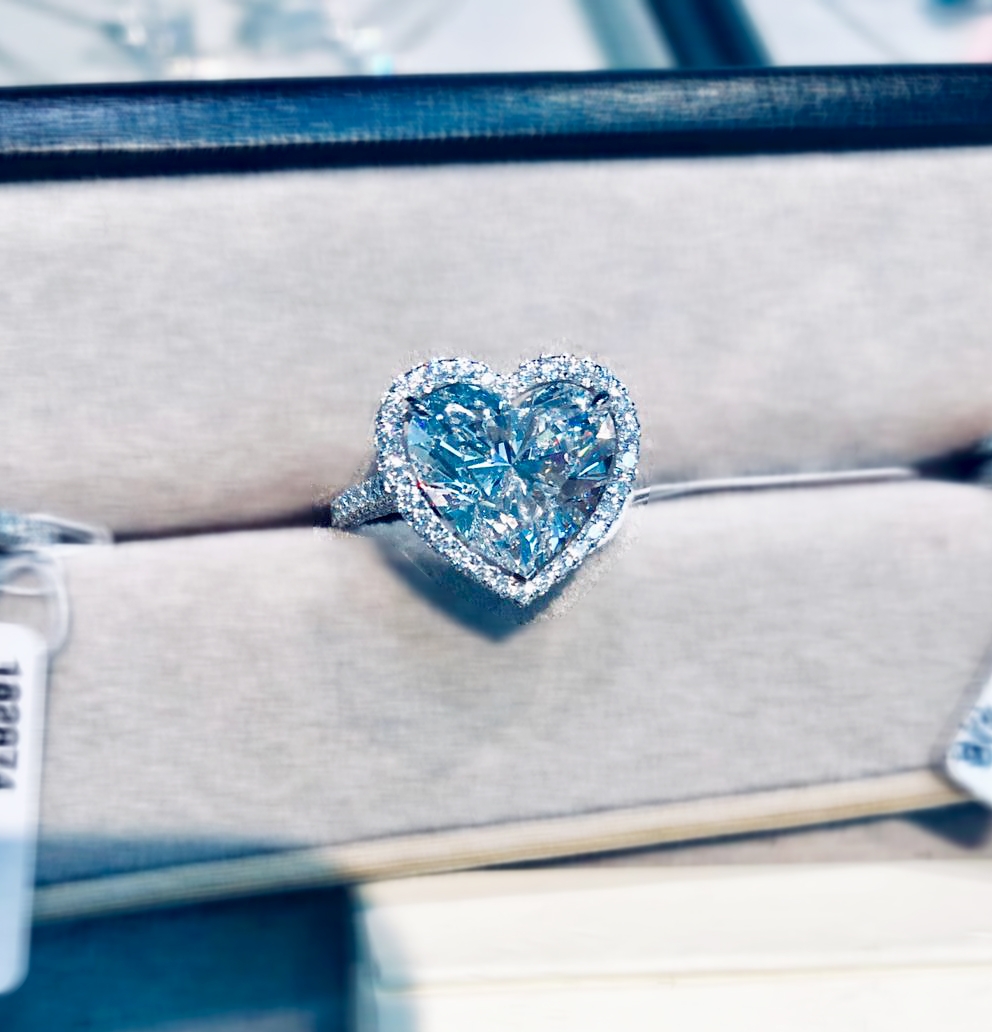 #eClarity Exclusive collection – A 6.55 carat heart-shaped diamond glows sophisticatedly within a halo and band of over 174 round brilliant diamonds in this breathtaking platinum ring. The attention to the little sorting and mounting delicacy makes this ring more than magnificent.