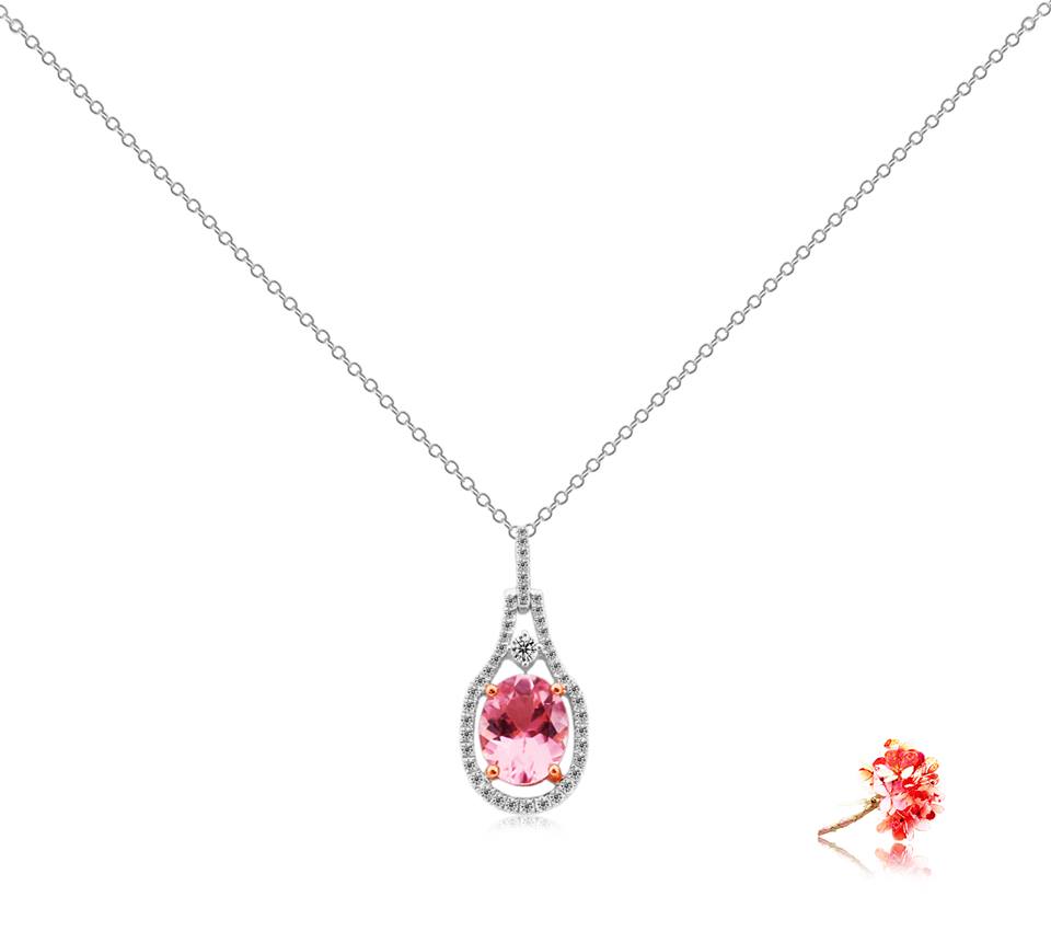 Explore eClarity’s rubellite diamond pendant – Scintillating with 1 oval rubellite 1.64 carat and 45 round brilliant diamonds 0.23 carat in 18K gold, white. (P00318)