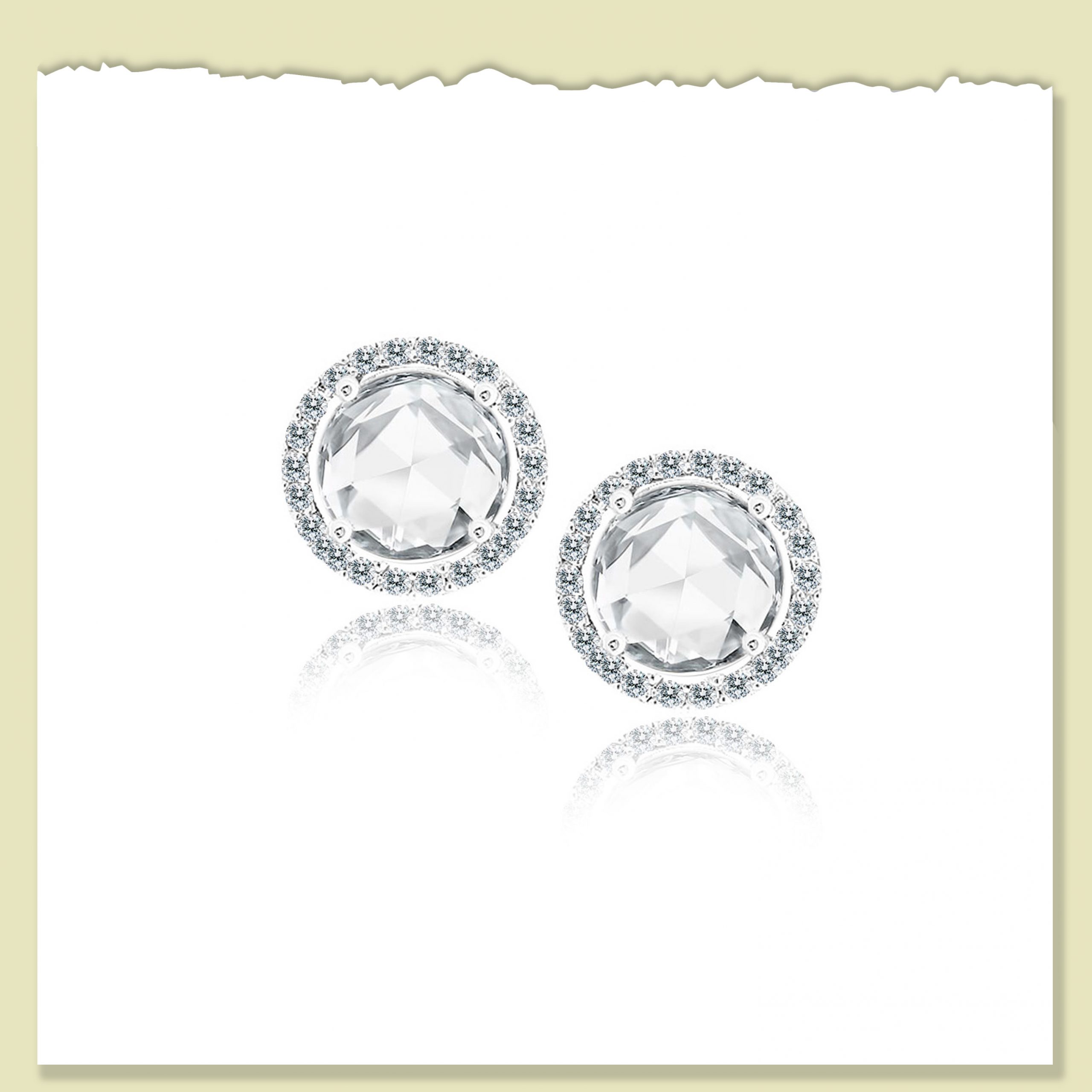 Halo design is simple and classic but rose cut diamond is extraordinary. Vintage, hand-cut, warm and sparkly, rose cut diamonds resemble petals unfolding in rose buds. These sophisticated earrings showcase 2 rose diamonds 2.19 carat, and 44 round brilliant diamond 0.3 carat, mounted flawlessly in 18k white gold. #eClarity #earrings #rosecut #diamond