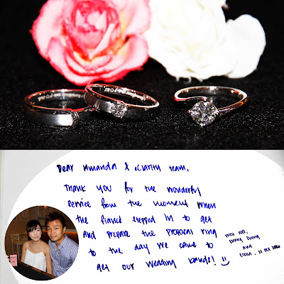 “Dear Amanda & eClarity team, thank you for the wonderful service from the moment when the fiancé stepped in to get and prepare the proposal ring to the day we came to get our wedding bands! ?”- with love, Zhangsheng & Stella