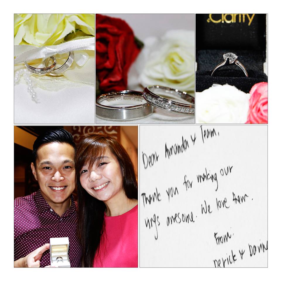 “Thank you eClarity especially #Amanda for the excellent professional #service. Both my proposal ring and #weddingbands are brought from #eClarity and no doubt. We will always patience from eClarity. We really love the ring designs. Recommended!! “ – Patrick & Irene